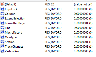 1. Go to the registry and export HKEY_CURRENT_USER\Software\Microsoft\Office\14.0\Word\StatusBar.