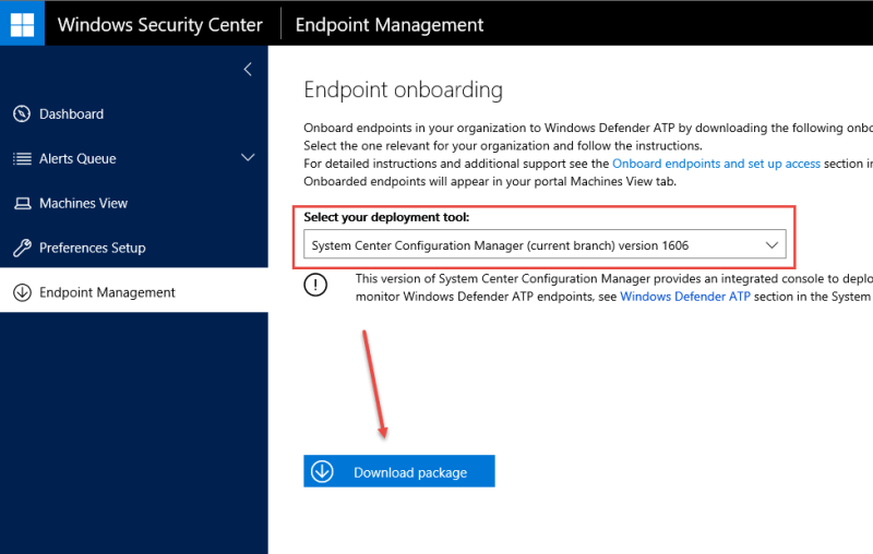 Windows Defender ATP – Onboarding Endpoint with Configuration Manager 1606 or higher