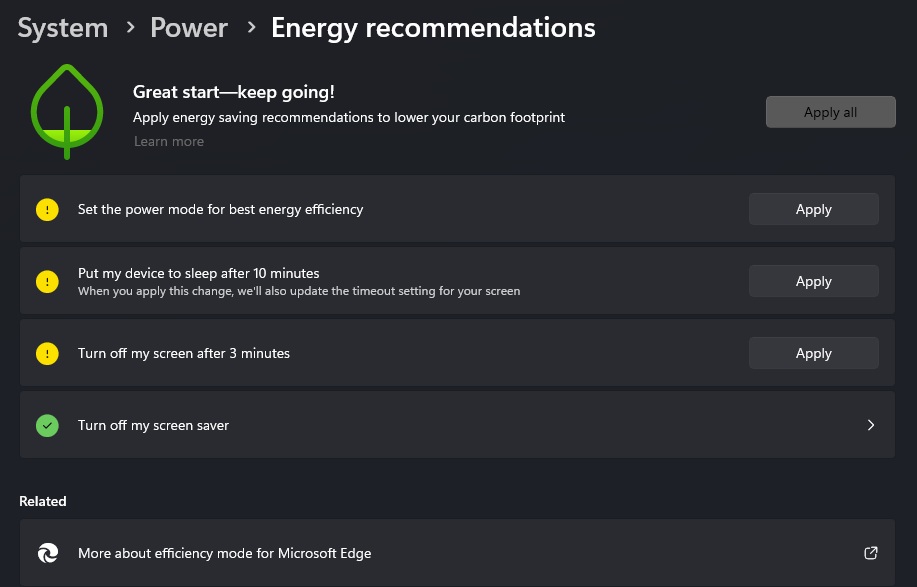 Energy savings recommendations